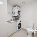 The master bedroom is well-sized and features sliding built-in wardrobes, providing excellent storage while maintaining a streamlined and uncluttered feel. The contemporary bathroom is both stylish and functional, complete with a cleverly integrated laundry nook that comes equipped with a dryer included for added convenience.