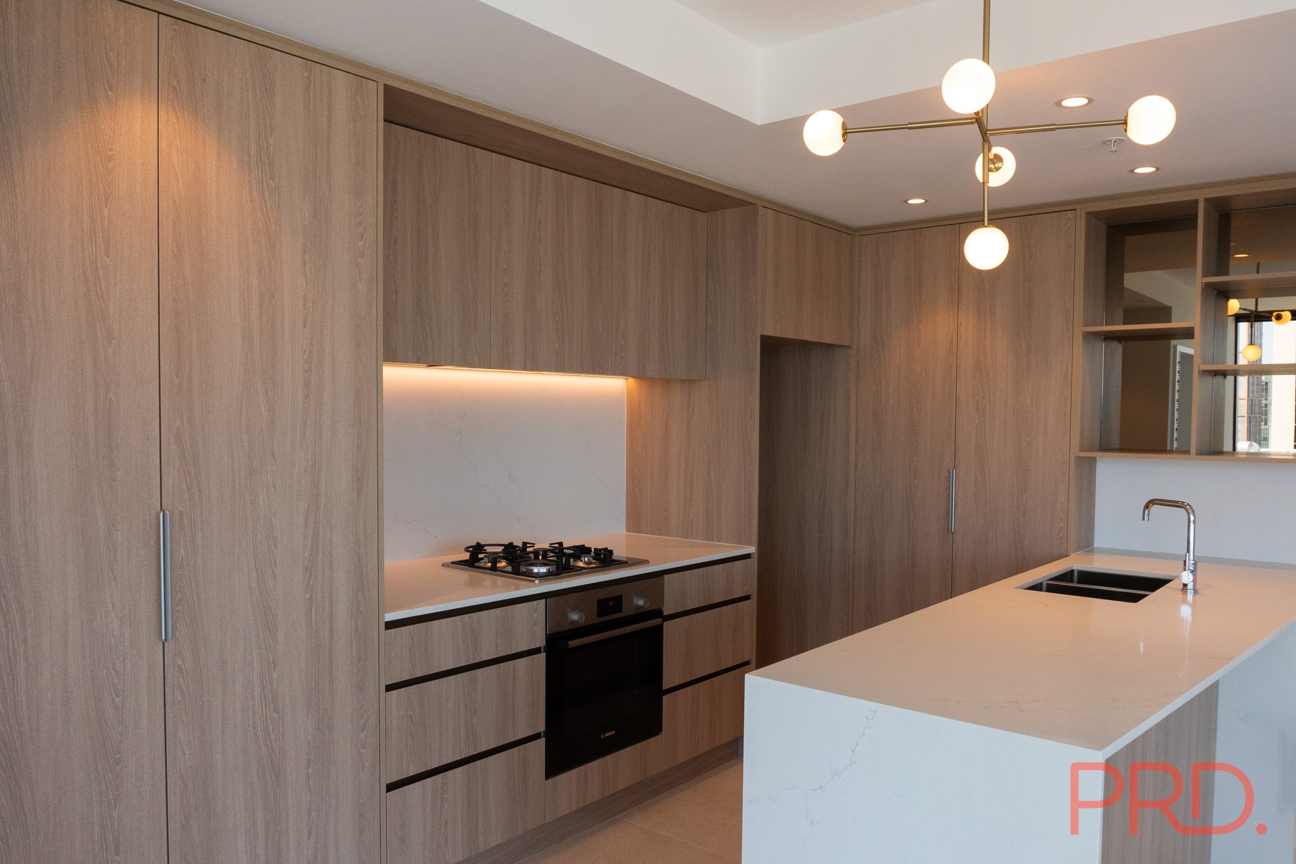 • Stylish Kitchens: Featuring stone bench tops, natural gas cooktops, and premium finishes.