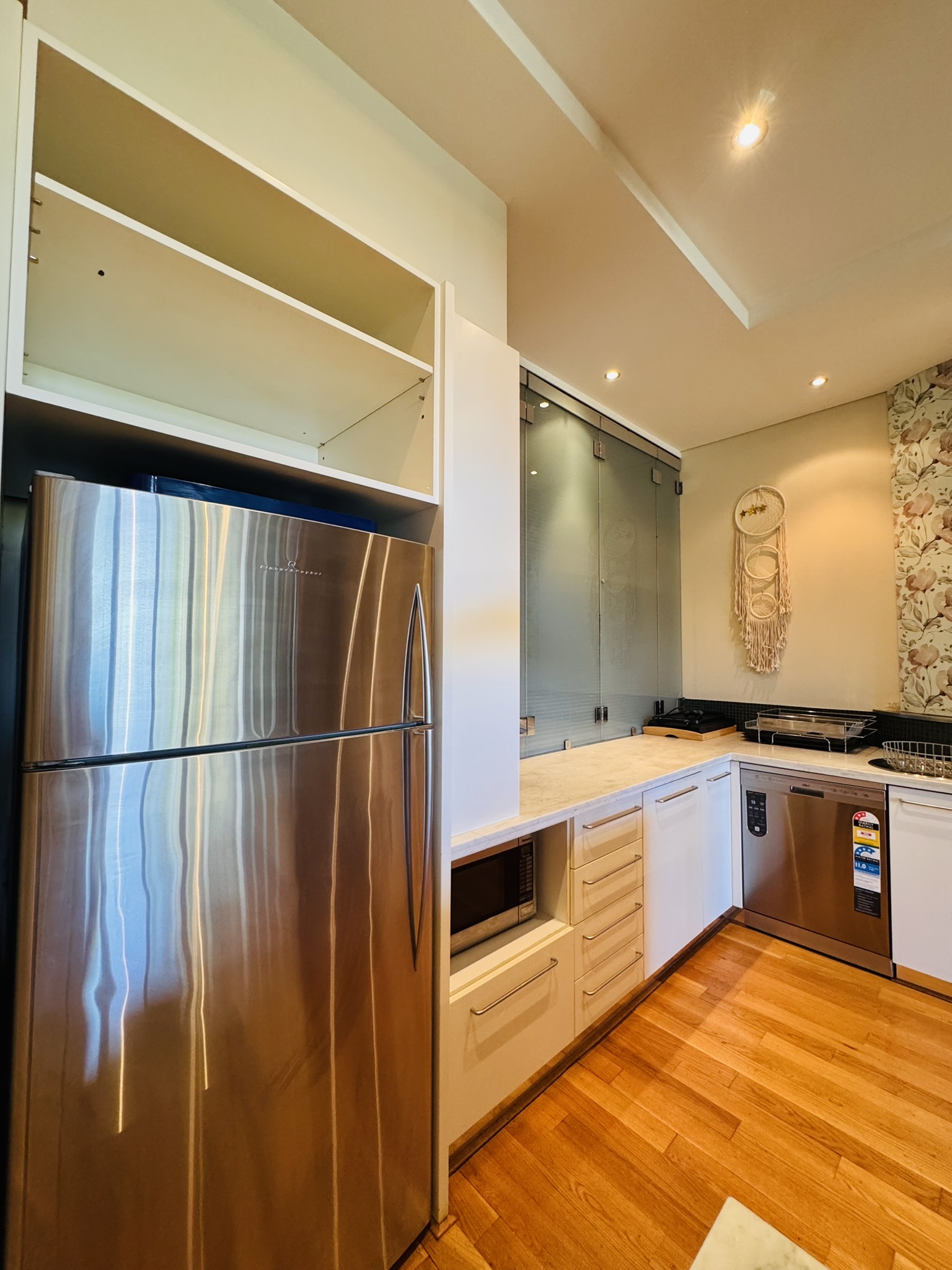 Contemporary kitchen with quality appliances and ample storage (new dishwasher)