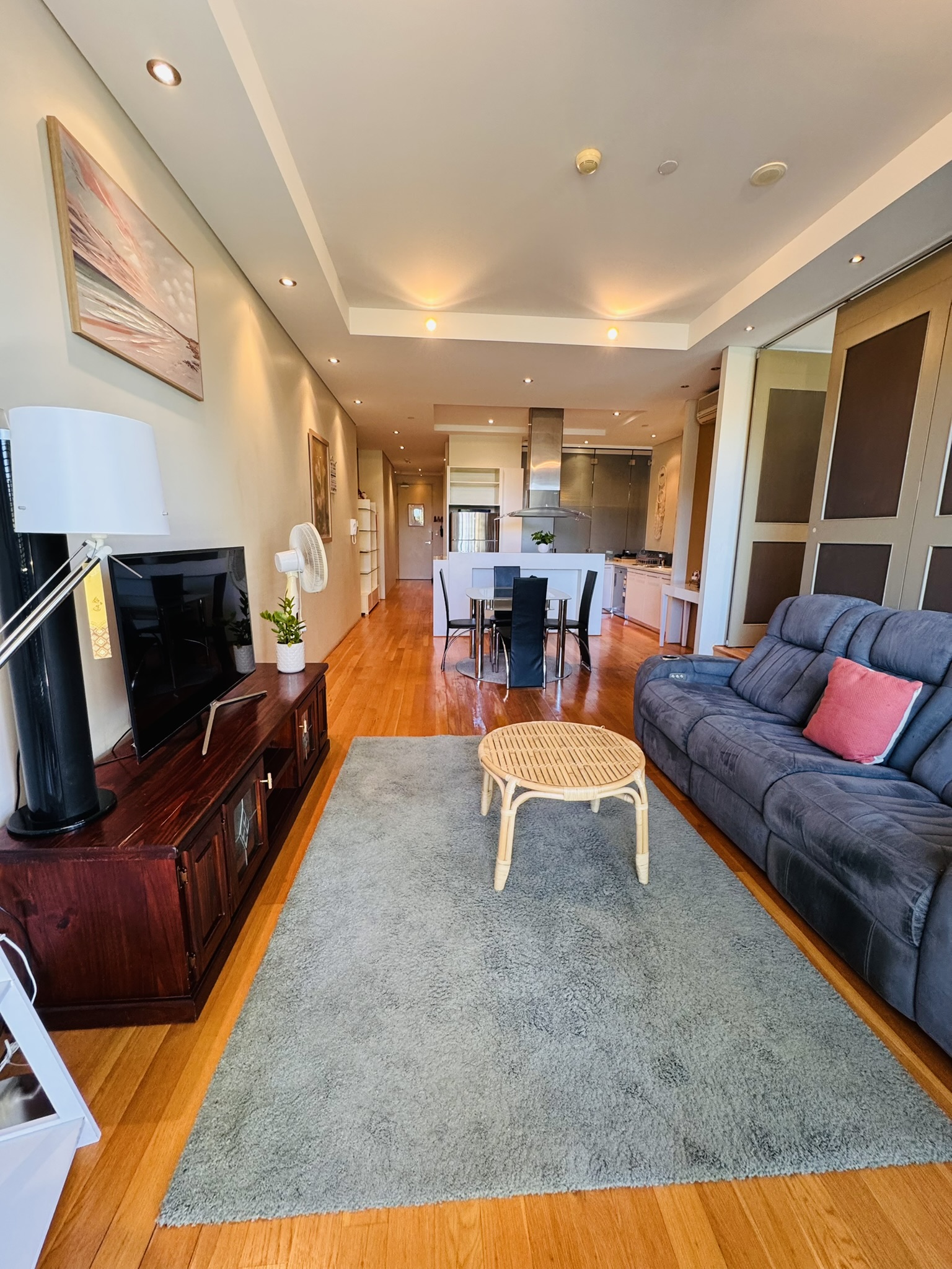 Spacious open-plan living and dining area with plenty of natural light and Tasmanian Oak Flooring to living and kitchen.
